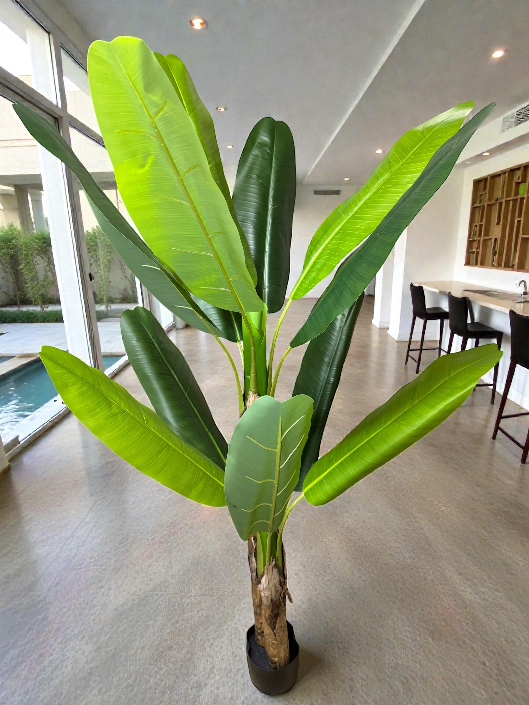 Banano artificiale realizzato con materiali di alta qualità che riproduce fedelmente l'aspetto naturale della pianta.