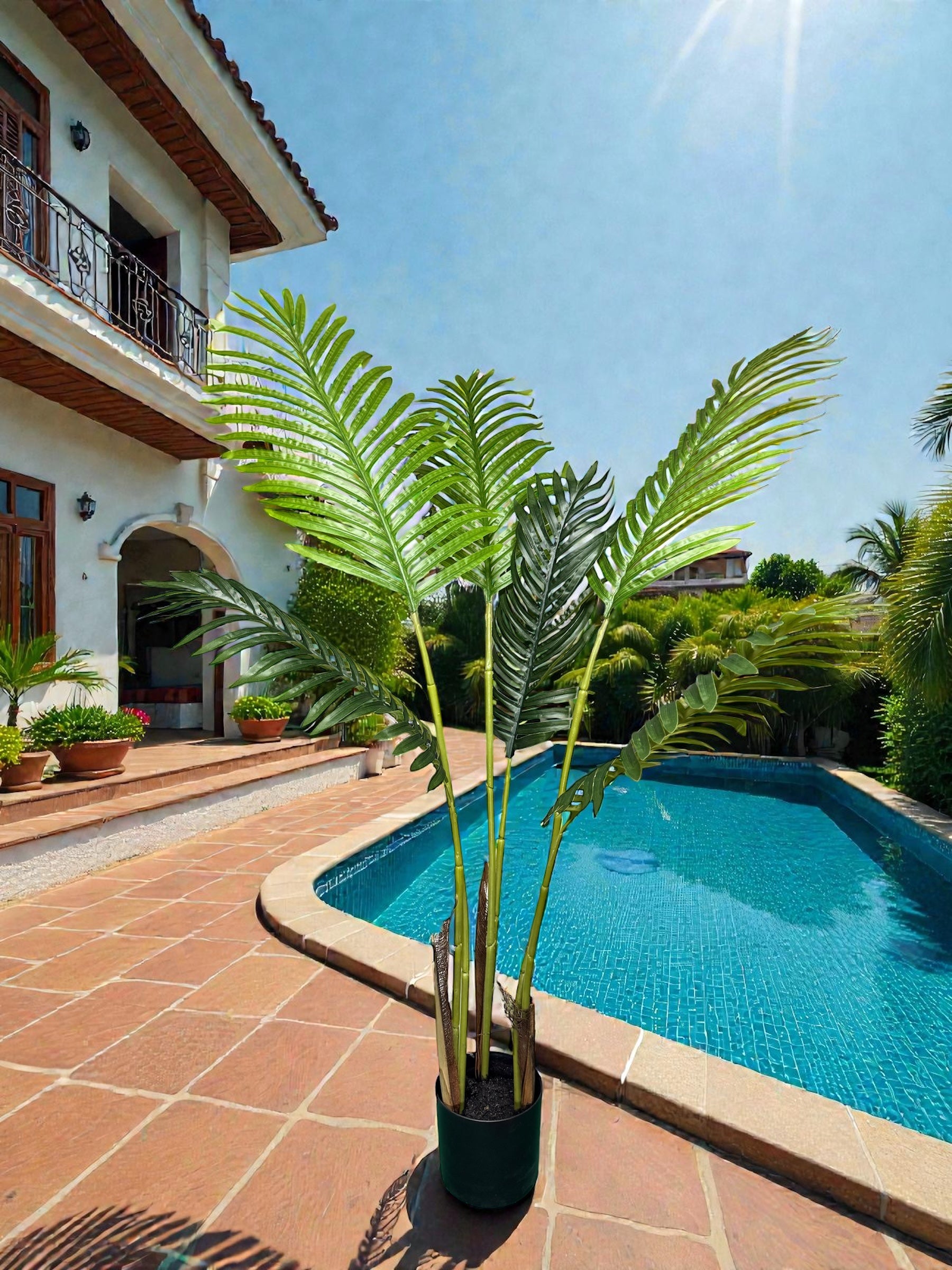Palma artificiale realizzata con materiali di qualità superiore che riproduce fedelmente l'aspetto naturale delle specie tropicali. Perfetta per chi desidera il calore della natura con la praticità del design moderno.